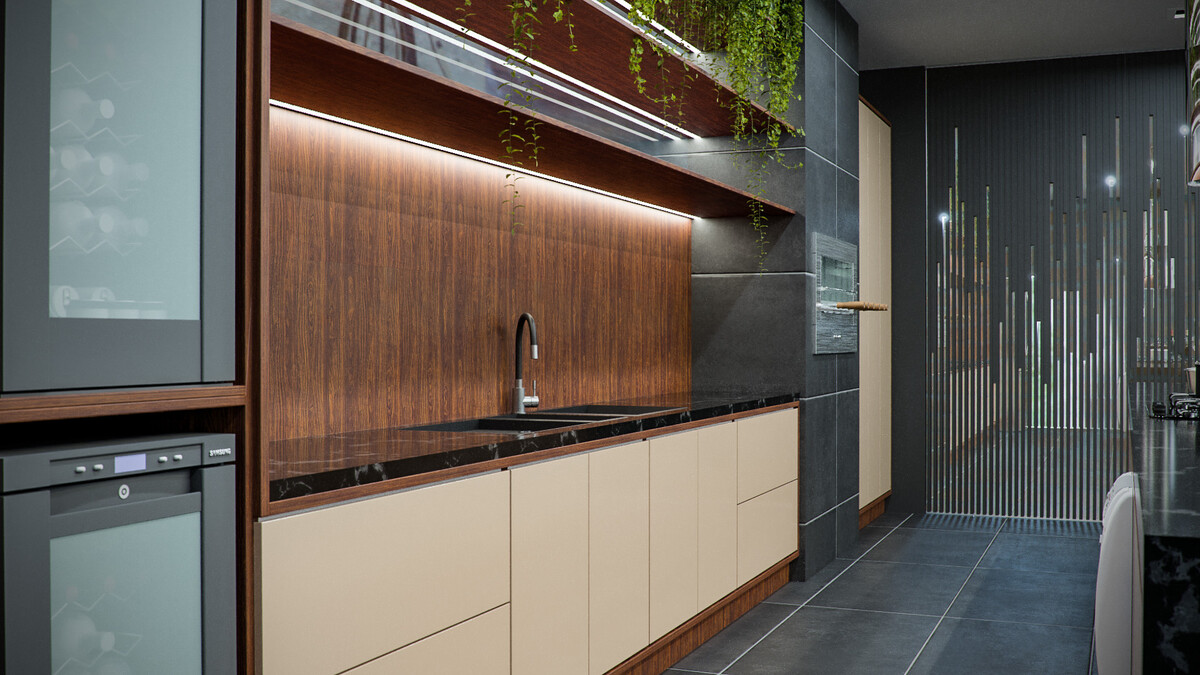 - Cozinha linear: todos os elementos são dispostos em uma única parede, ideal para espaços estreitos;