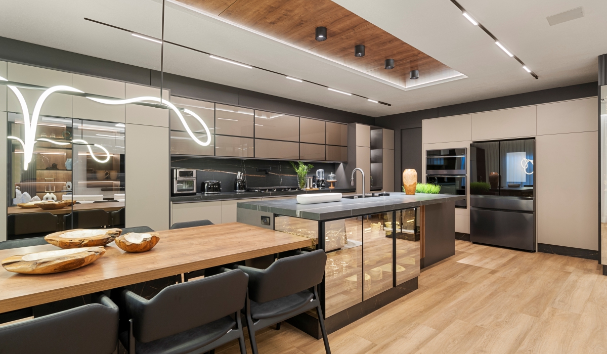Uma cozinha grande e moderna oferece a liberdade de explorar layouts mais amplos, incluindo ilhas extensas, despensas generosas e múltiplos espaços de trabalho. É um convite à criação e ao convívio, permitindo a inclusão de bancadas de apoio, áreas de refeição informais e até mesmo um canto para degustação de vinhos.