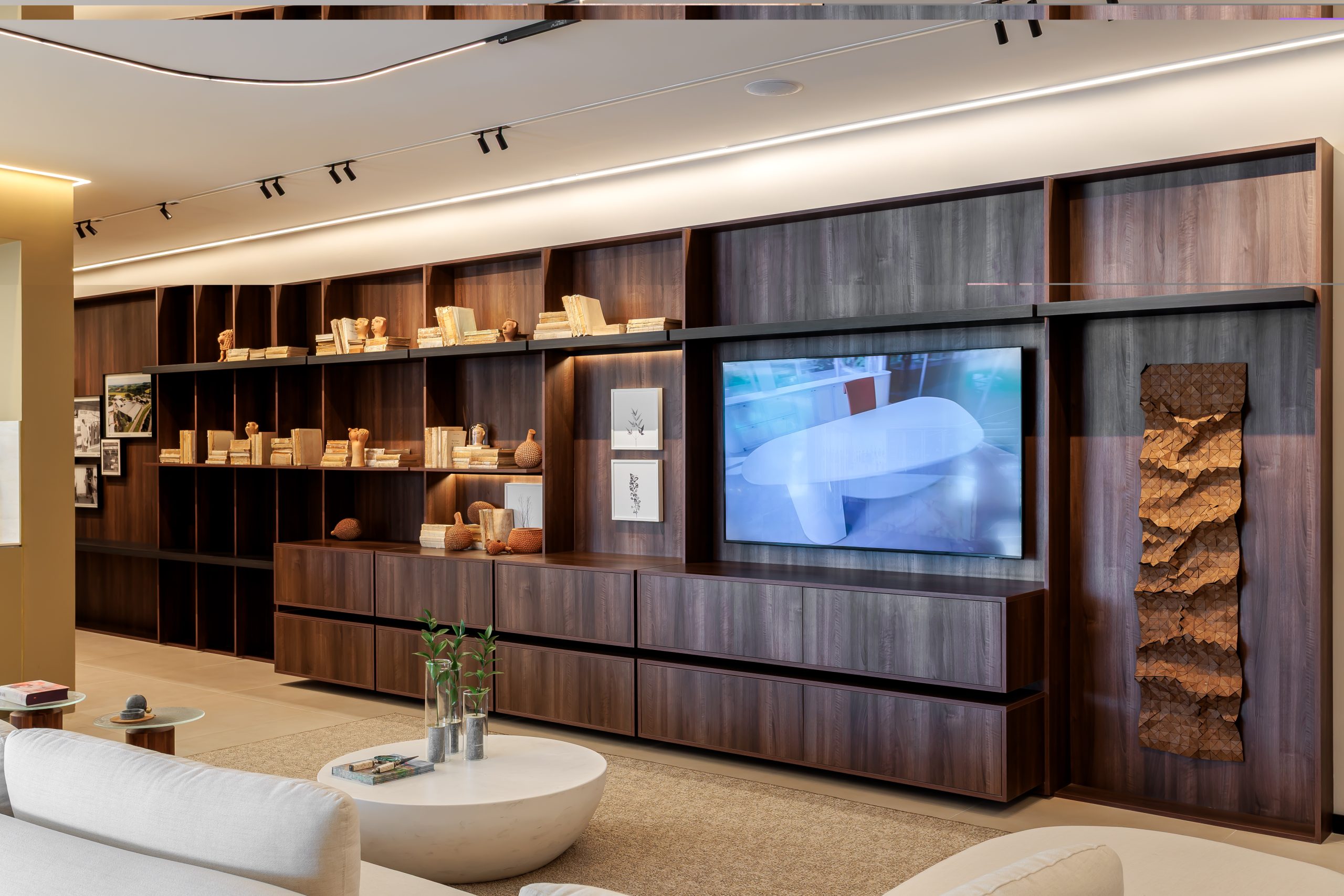 O principal diferencial de uma sala planejada está na organização. Cada móvel é concebido sob medida para comportar os objetos, equipamentos e acessórios sem comprometer a fluidez do espaço. Resultado? Um ambiente mais limpo, sem excessos visuais, onde tudo possui um lugar próprio.