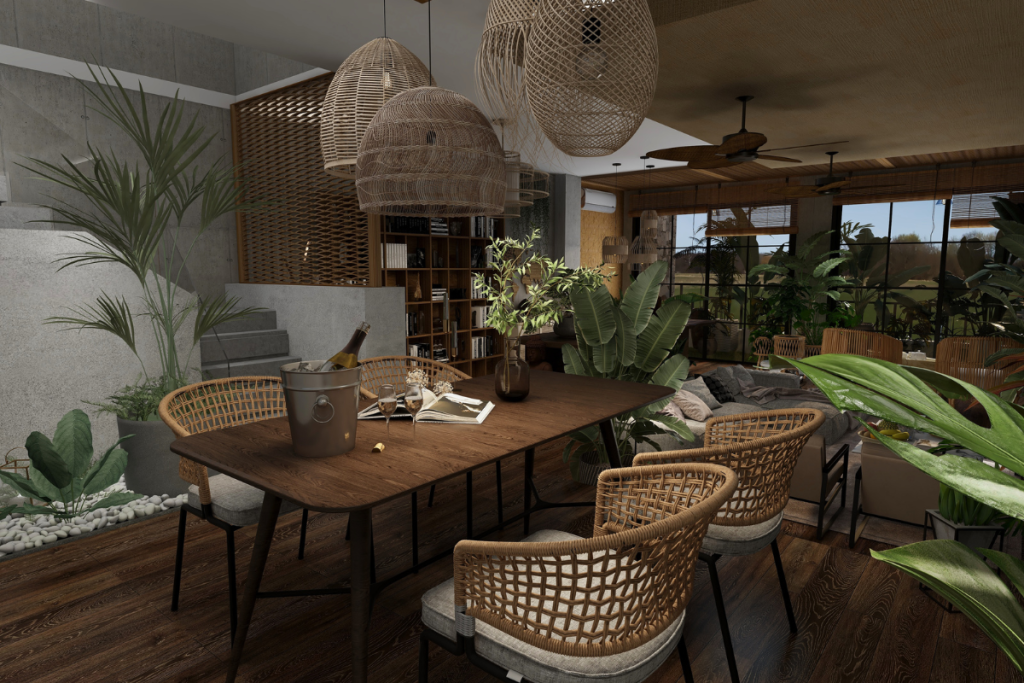 Sobre o uso de materiais, são priorizados sempre que possível aqueles que dialogam com o clima tropical do país: amadeirado, fibras naturais, linho, couro e pedra.