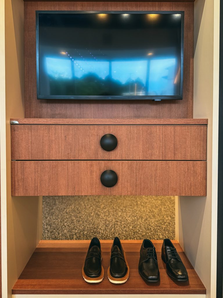No closet e no dormitório, a lógica é outra. O contato com os móveis é constante, logo, o recomendado é que os puxadores sejam integrados à marcenaria para manter a fluidez visual e evitar muitos impactos.