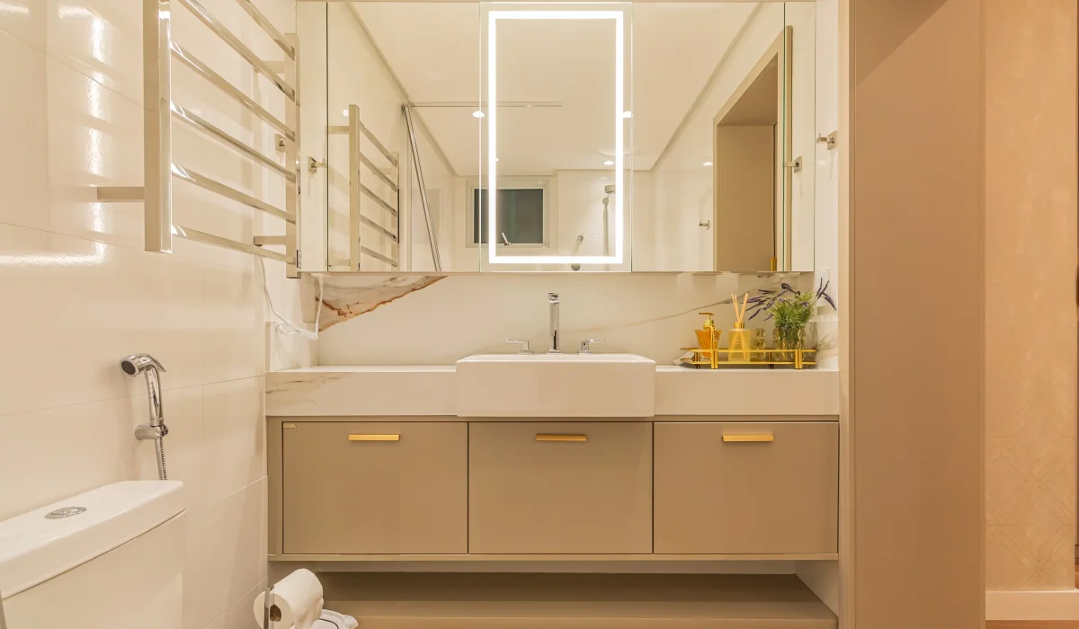 Bathroom mirrors are no longer purely functional—they’re now key decorative features that visually expand the space. In modern bathroom designs, large mirrors with unique frames or integrated lighting are powerful allies in creating a sophisticated environment.