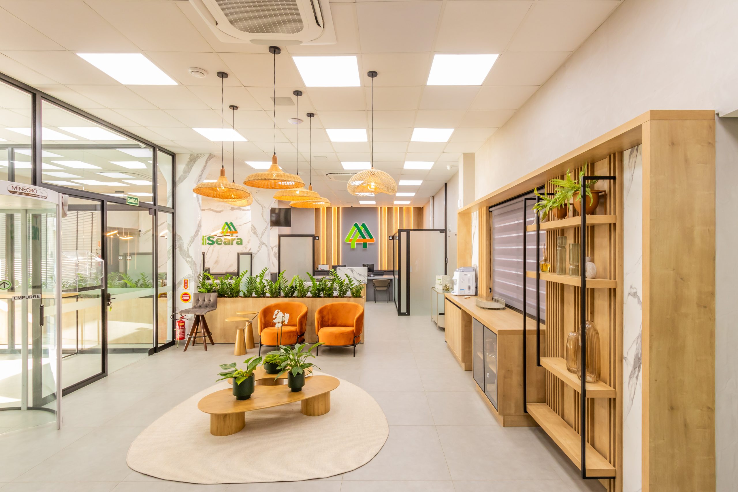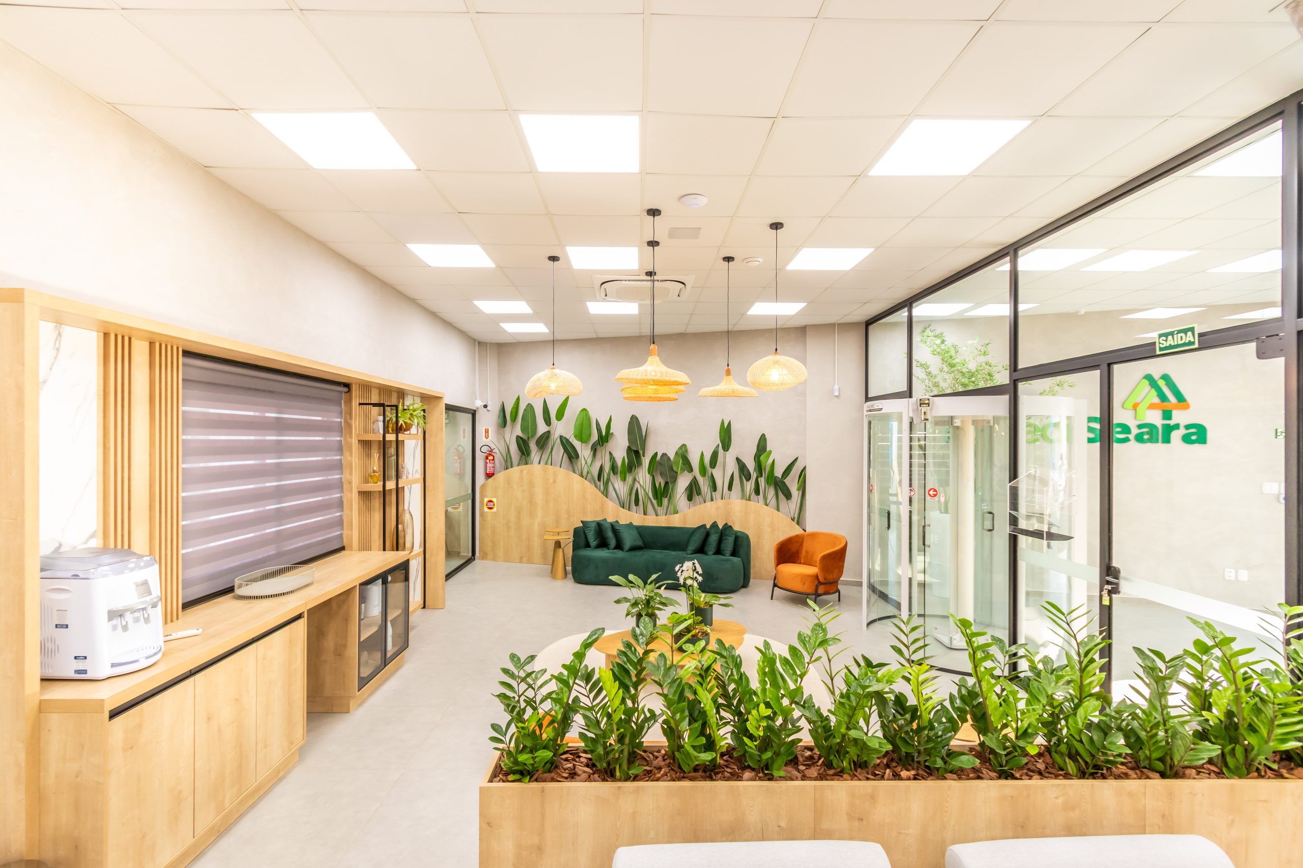 The integration of natural elements such as plants, wood, and stone brings more comfort and reduces stress, improving quality of life at work.